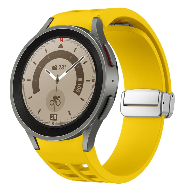 Correa de Silicona para Samsung Galaxy Watch 5 Pro 45mm con Hebilla Plateada Plegable Magnética (Amarillo)