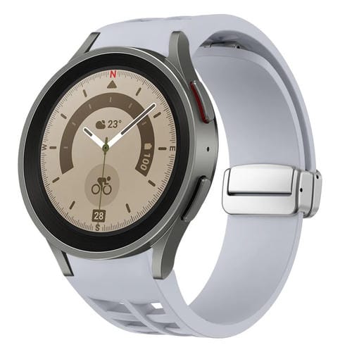 Correa de Silicona para Samsung Galaxy Watch 5 Pro 45mm Richard con Hebilla Plateada Plegable Magnética (Gris Claro)