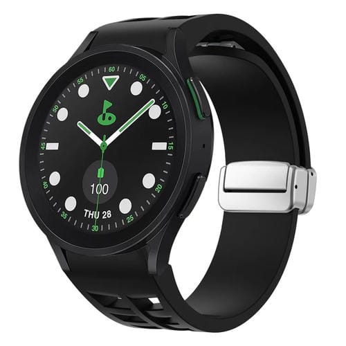 Correa de Silicona para Samsung Galaxy Watch 5 Pro Golf Edition Richard Correa con Hebilla Plateada Plegable Magnética (Negro)