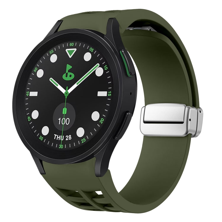 Correa de Silicona para Samsung Galaxy Watch 5 Pro Golf Edition Richard Correa con Hebilla Plateada Plegable Magnética (Verde Militar)