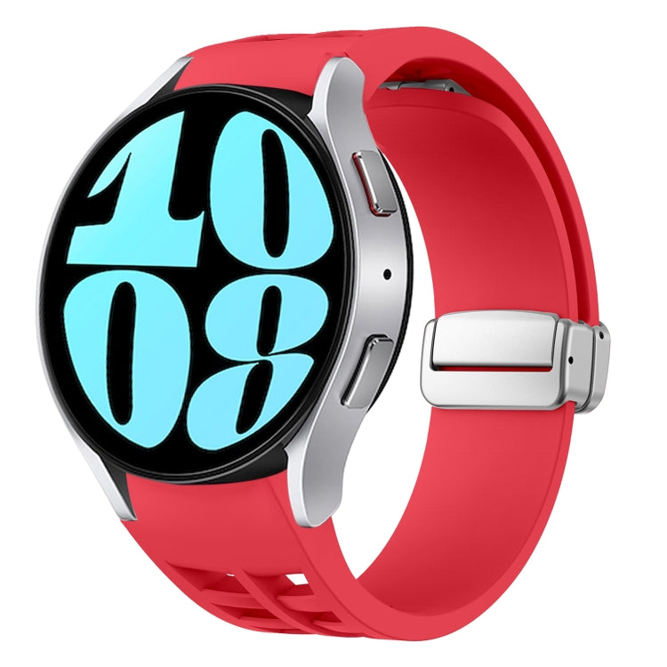 Correa de Silicona para Samsung Galaxy Watch 6 40/44mm Richard con Hebilla Plateada Plegable Magnética (Rojo)