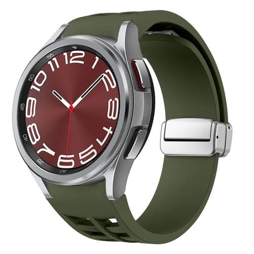 Correa de Silicona para Samsung Galaxy Watch 6 Classic 43/47mm Richard con Hebilla Plateada Plegable Magnética (Verde Militar)