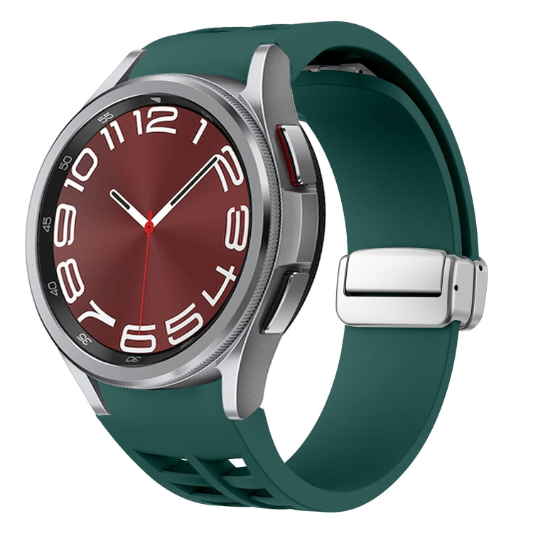 Correa de Silicona para Samsung Galaxy Watch 6 Classic 43/47mm con Hebilla Plateada Plegable Magnética (Verde Oscuro)