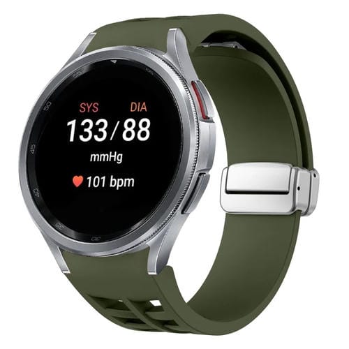 Correa de Silicona para Samsung Galaxy Watch 7 40/44mm Richard con Hebilla Plateada Plegable Magnética (Verde Militar)