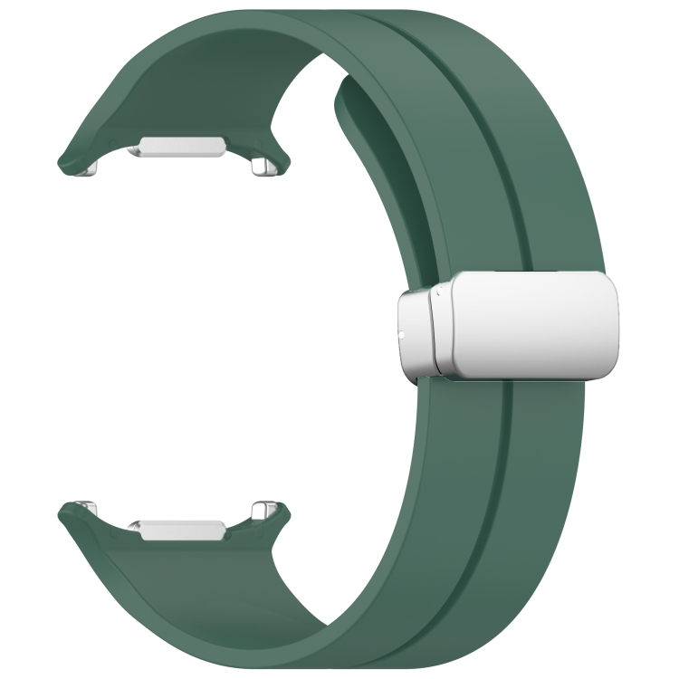 Correa de Silicona para Samsung Galaxy Watch 7 Ultra Groove con Hebilla Plateada Plegable Magnética (Verde)
