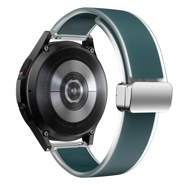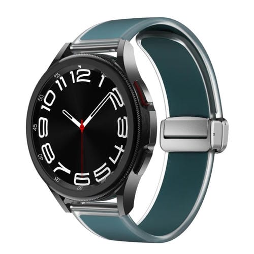 Correa de Silicona para Samsung Galaxy Watch6/5/4 con Hebilla Plateada Magnética Translúcida (Verde Oscuro)