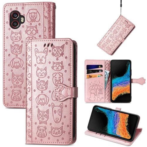 Estuche para Samsung Galaxy Xcover6 Pro Cuero En Relieve Cute Cat And Dog (Oro Rosa)