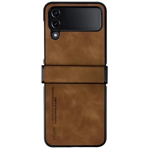 Estuche plegable para teléfono Samsung Galaxy Z Flip4 I.Crystal Lambskin de tres piezas (Marrón)
