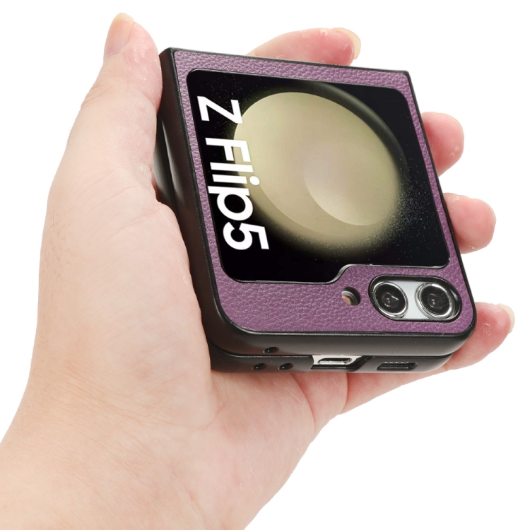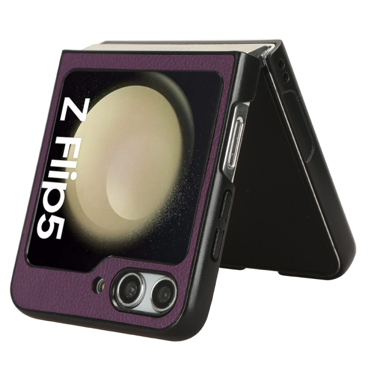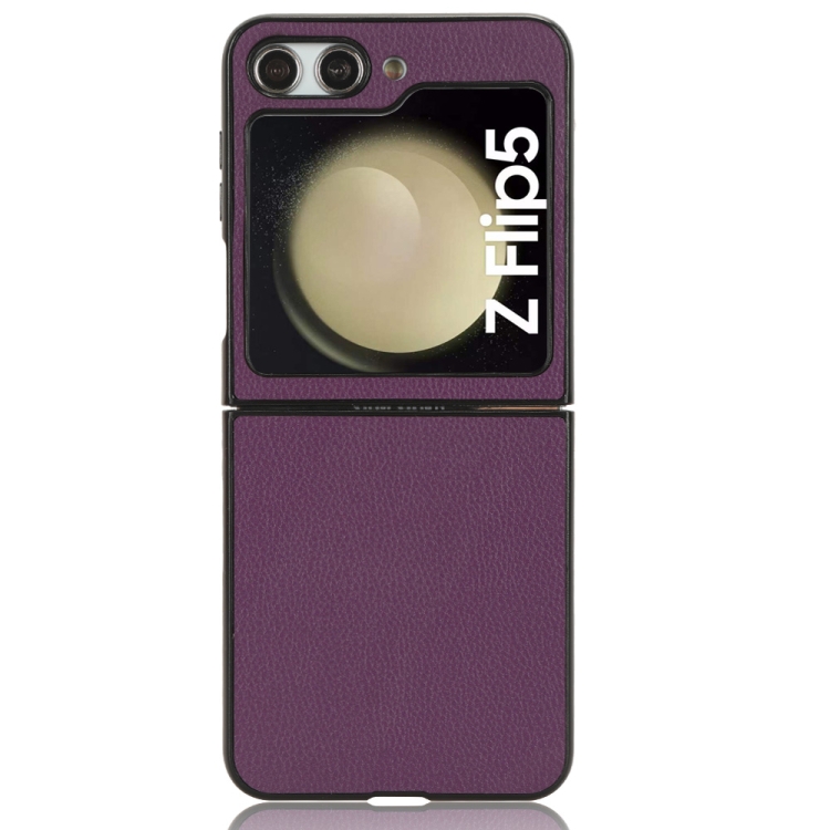 Funda para teléfono Samsung Galaxy Z Flip5 Litchi Textura Contraportada (Púrpura)