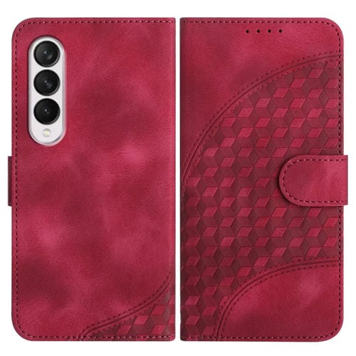 Funda de Cuero Samsung Galaxy Z Fold3 5G Yx0060 con Relieve y Cabeza de Elefante con Cordón (Rojo Rosa)
