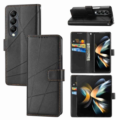 Funda para Teléfono Samsung Galaxy Z Fold3 PU Cuero Genuino Línea En Relieve (Negro)