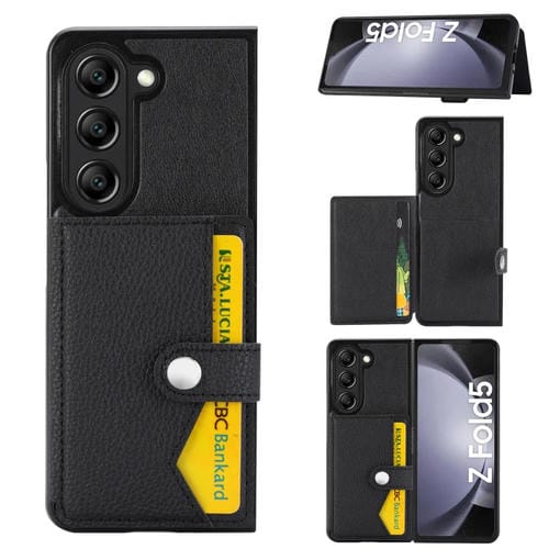 Funda para Teléfono Samsung Galaxy Z Fold5 Litchi Pattern con Tarjetero de Un Solo Botón (Negro)