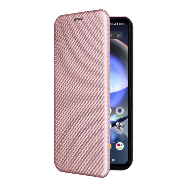 Funda de Cuero para Sharp Aquos R8 con Textura de Fibra de Carbono (Rosa)