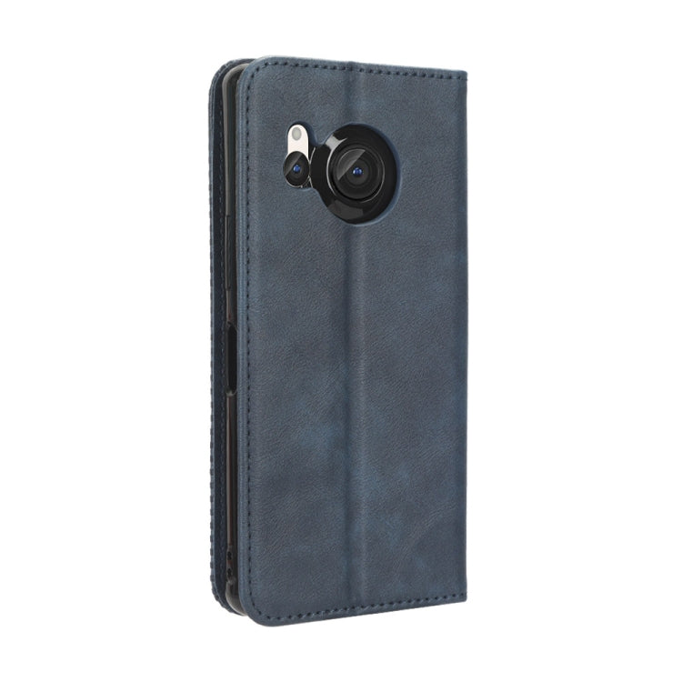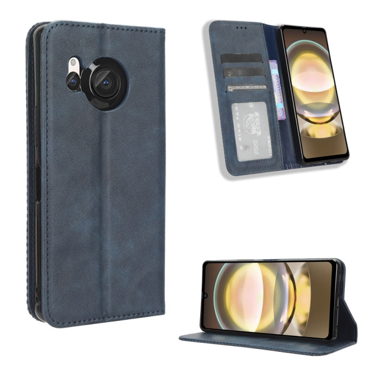 Funda de Cuero para Sharp Aquos R8 con Hebilla Magnética y Textura Retro (Azul)