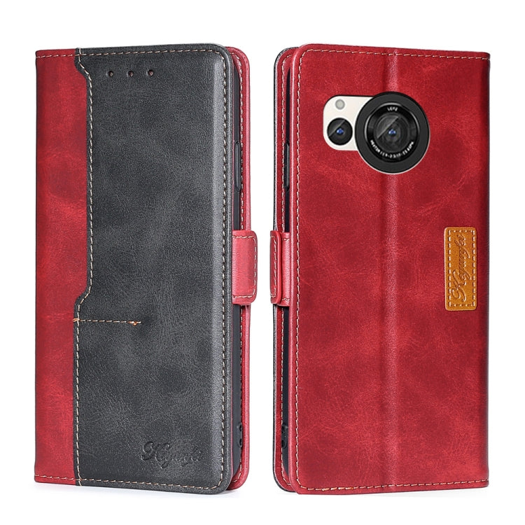 Funda de Cuero para Sharp Aquos R8 Sh-52D con Hebilla Lateral y Contraste (Rojo + Negro)