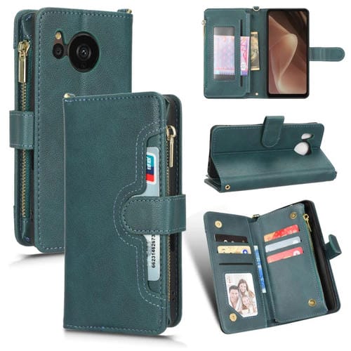 Funda de Cuero para Sharp Aquos Sense7 Plus con Textura Litchi y Cremallera (Verde)