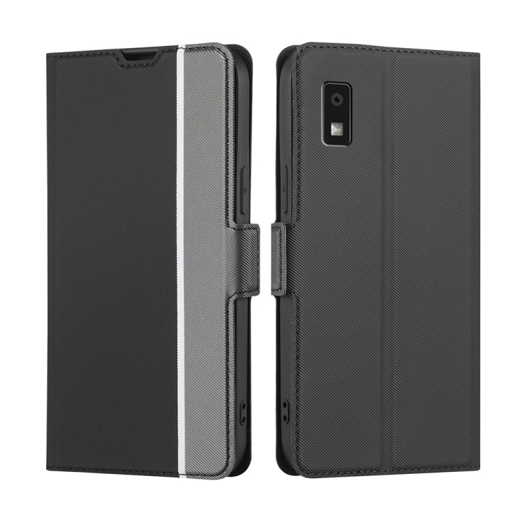 Funda de Cuero para Sharp Aquos Wish 3 con Textura Twill y Botones Laterales (Negro)
