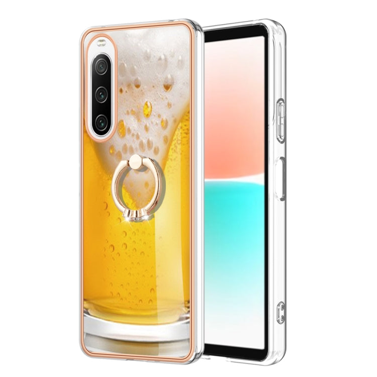 Funda para Sony Xperia 10 IV Galvanoplastia IMD Doble Cara con Soporte para Anillo (Cerveza de Barril)