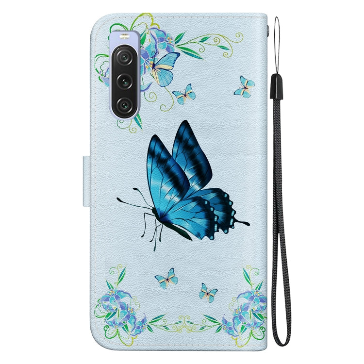 Funda de Cuero para Sony Xperia 10 V (2023) con Dibujo Coloreado y Textura de Cristal (Azul)