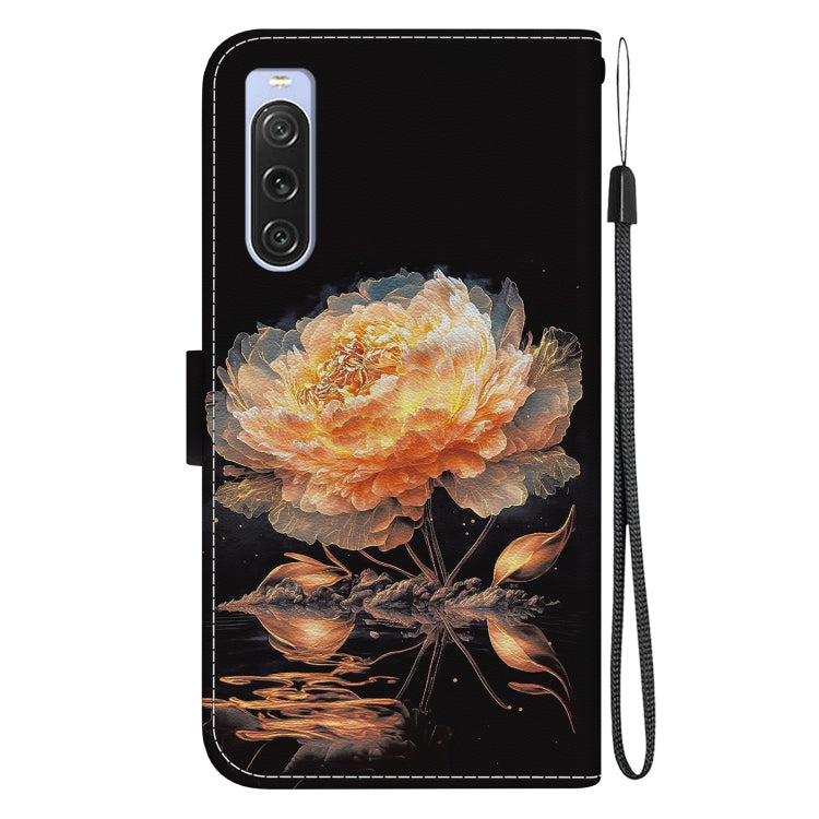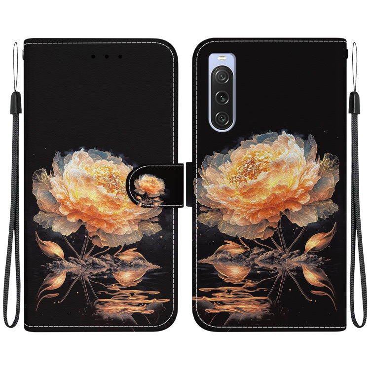 Funda de Cuero para Sony Xperia 10 V (2023) con Dibujo Coloreado y Textura de Cristal (Peonía Dorada)