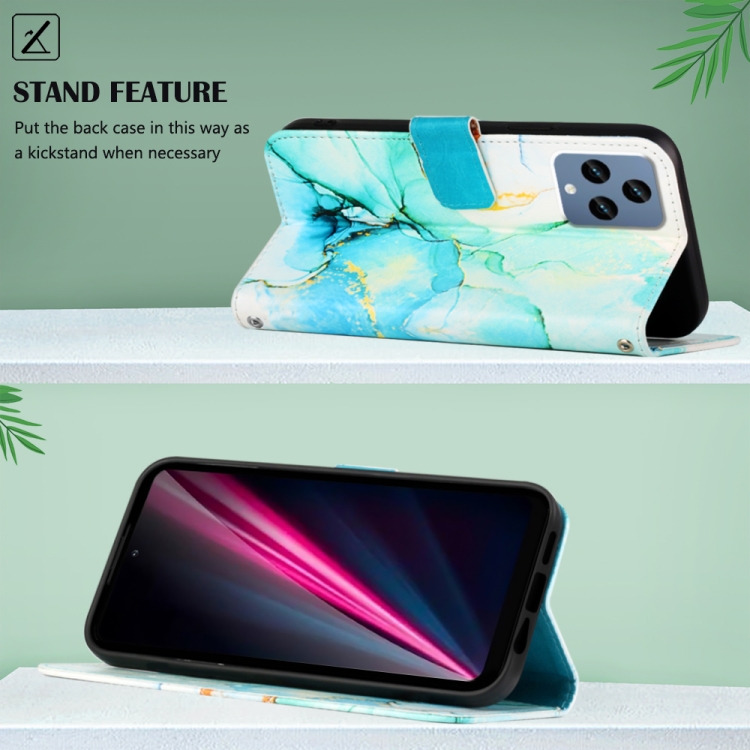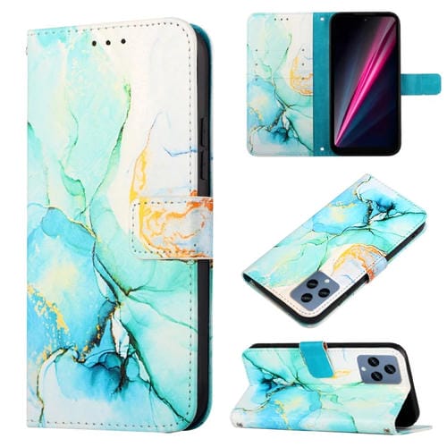 Estuche de Cuero para T-Mobile Revvl 6 5G Pt003 con Tapa de Patrón Mármol (Verde)