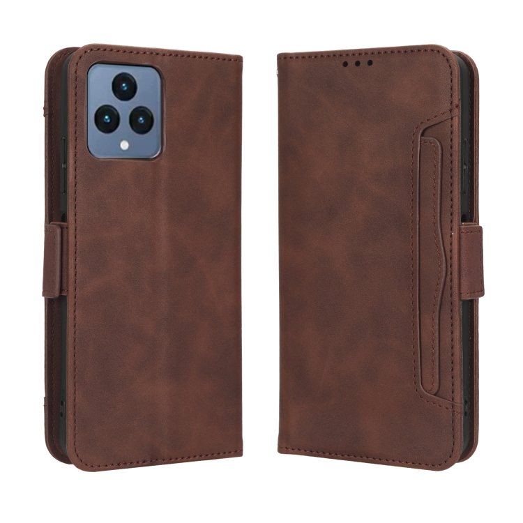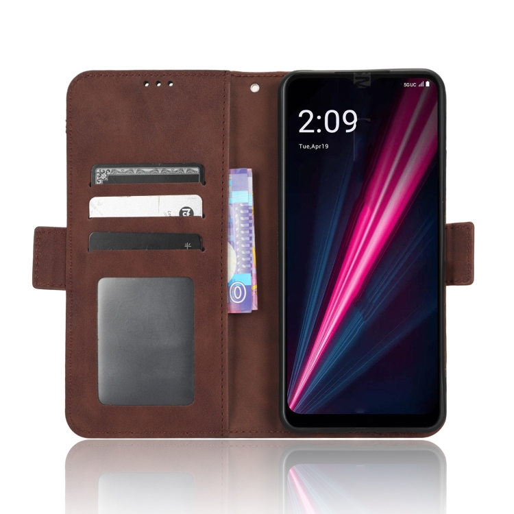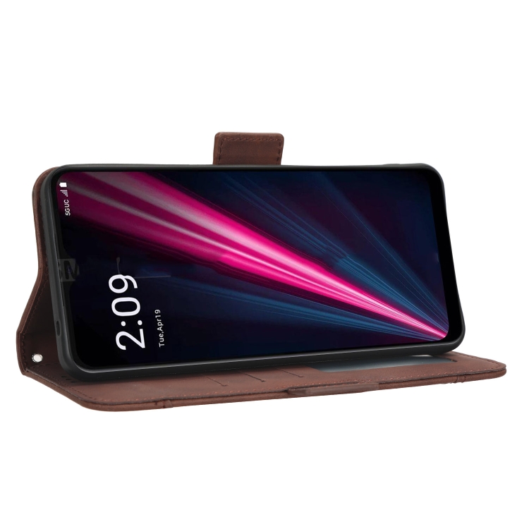 Funda de Cuero para T-Mobile Revvl 6 5G con Ranuras para Tarjetas y Textura Becerro (Marrón)