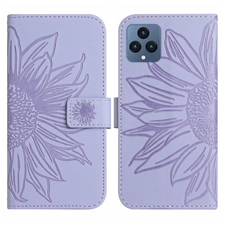 Funda Flip de Cuero para T-Mobile Revvl 6 5G con Cordón y Diseño Sun Flower (Púrpura)