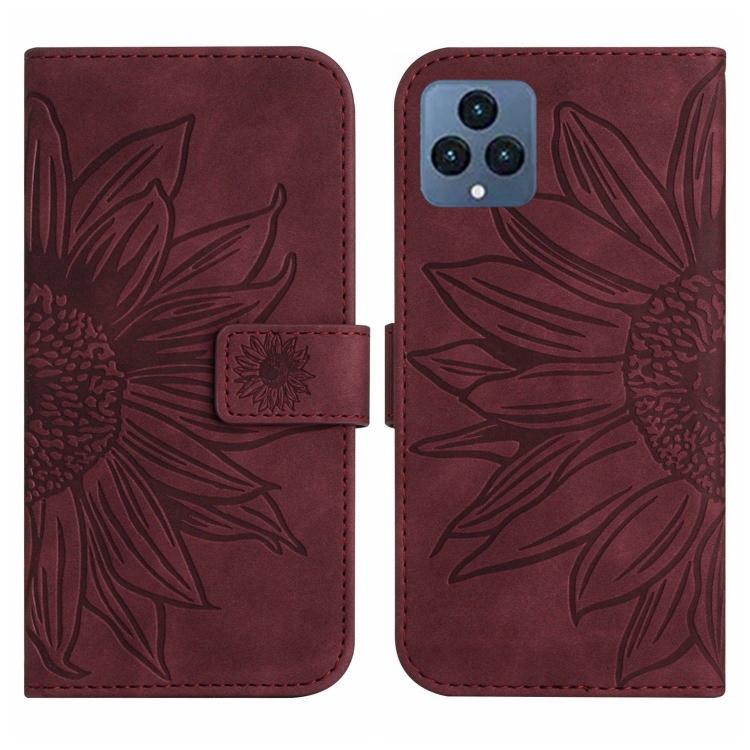 Funda Flip de Cuero T-Mobile Revvl 6 5G con Cordón y Diseño Sun Flower (Rojo Vino)