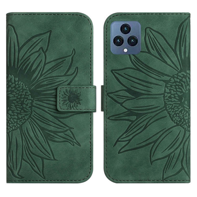Funda Flip de Cuero para T-Mobile Revvl 6 5G con Cordón y Diseño Sun Flower (Verde)