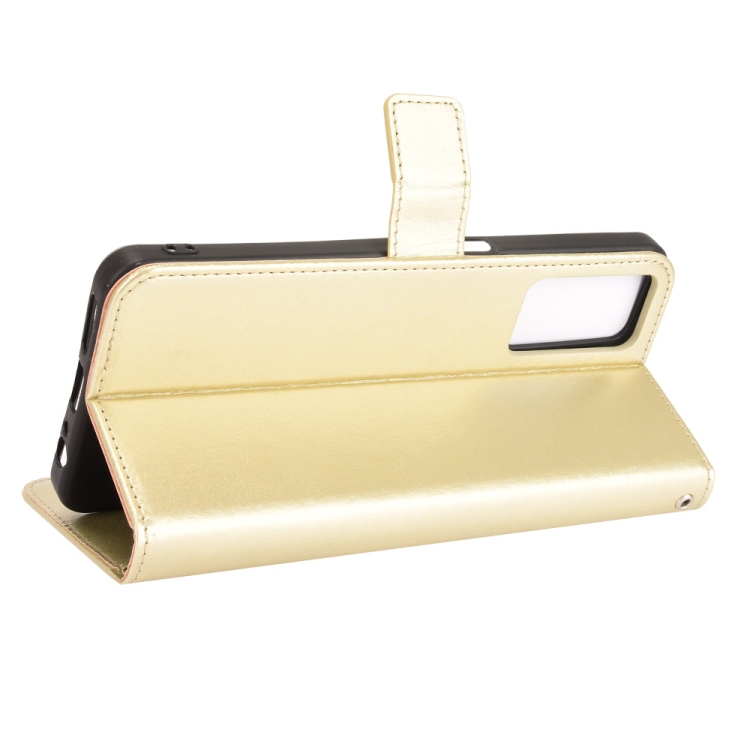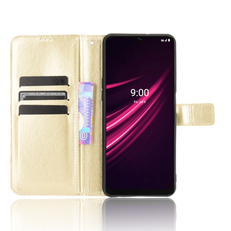 Funda de Cuero Crazy Horse para T-Mobile Revvl V + 5G con Soporte, Ranuras y Cordón (Oro)