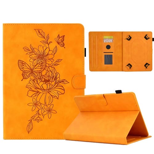 Estuche para Tableta 7 Pulgadas Cuero con Relieve Mariposa Peonía (Caqui)