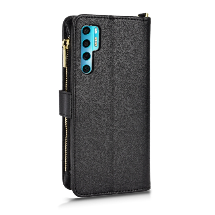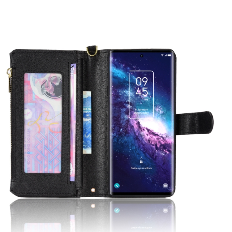 Funda para TCL 20 Pro 5G Litchi Texture Caqueta de Cuero con Cremallera (Negro)