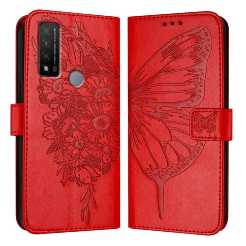 Funda de Cuero para TCL 20 R 5G con Mariposa en Relieve (Rojo)