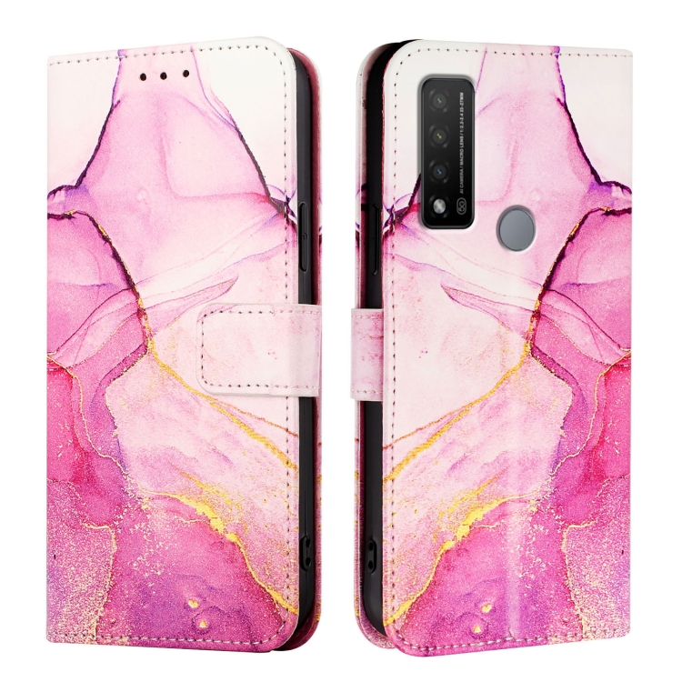 Funda de Cuero para TCL 20R 5G Pt003 con Tapa y Patrón de Mármol (Oro Rosa Púrpura)