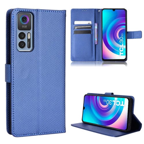 Funda de Cuero para TCL 30 5G y 30+ con Textura Diamante (Azul)
