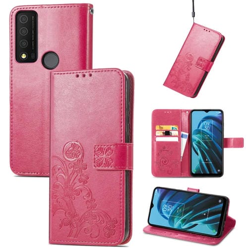 Funda de Cuero para TCL 30 Xe 5G con Relieve de Cuatro Hojas (Rosa Roja)
