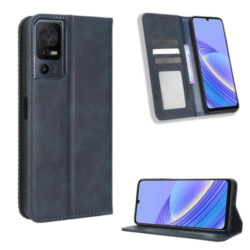 Funda de Cuero para TCL 40 Se con Hebilla Magnética y Textura Retro (Azul)