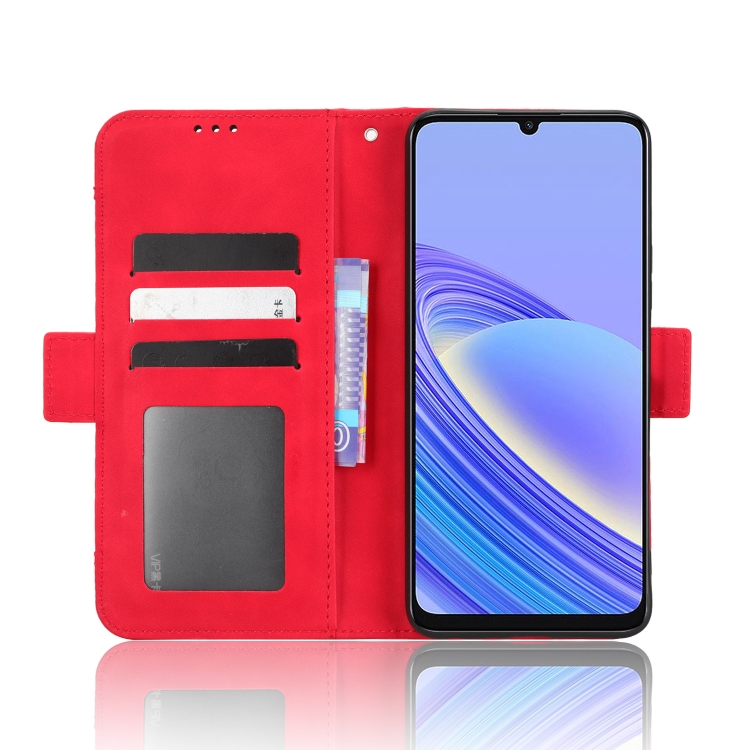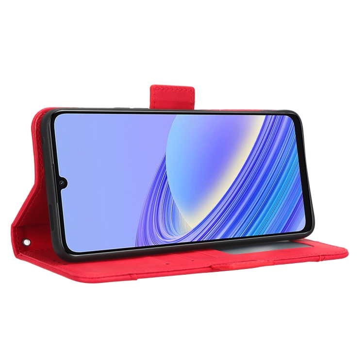 Funda de Cuero para TCL 40 Se Skin Feel con Textura Becerro y Ranuras para Tarjetas (Rojo)