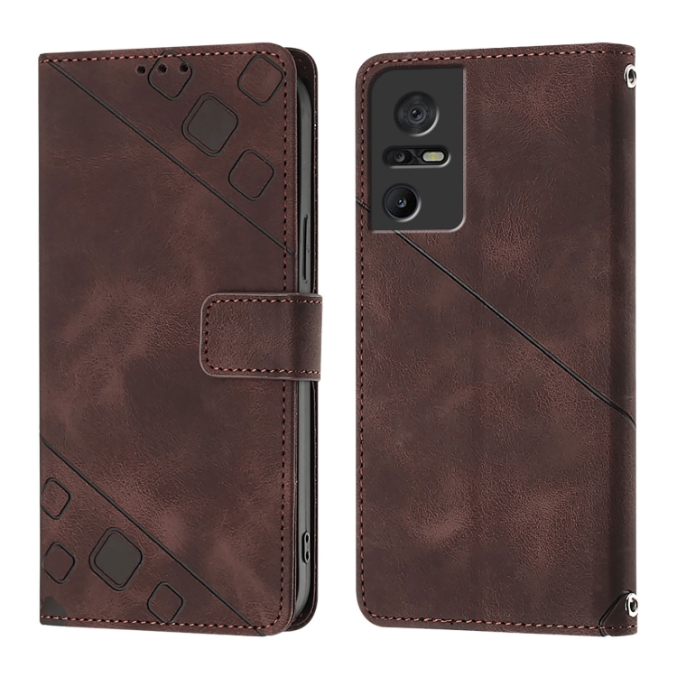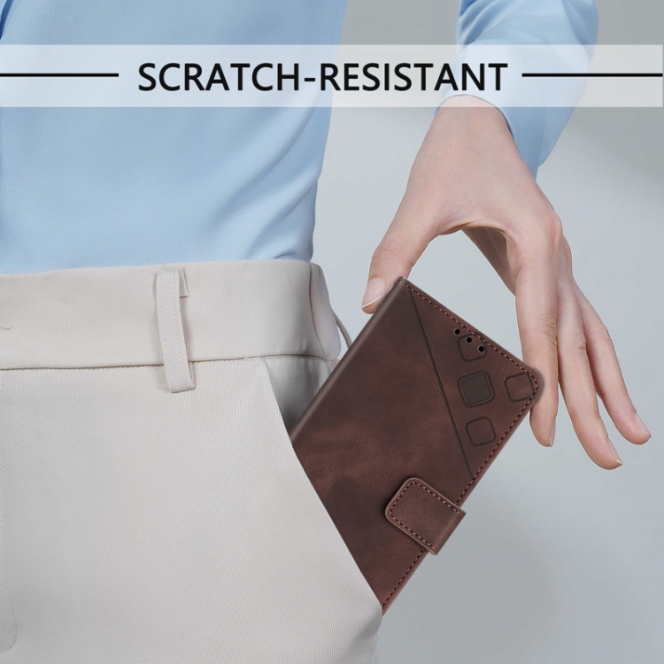 Funda de Cuero para TCL 40 Se Skin Feel Teléfono En Relieve (Marrón)