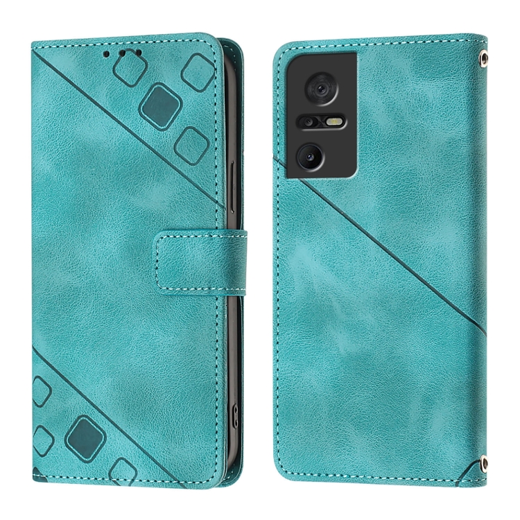 Funda de Cuero para TCL 40 Se Skin Feel en Relieve (Verde)