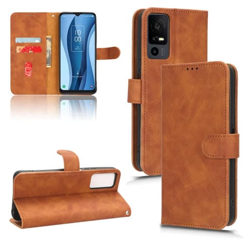 Funda Flip de Cuero para TCL 40 Xe 5G Skin Feel Magnética (Marrón)