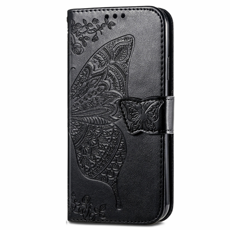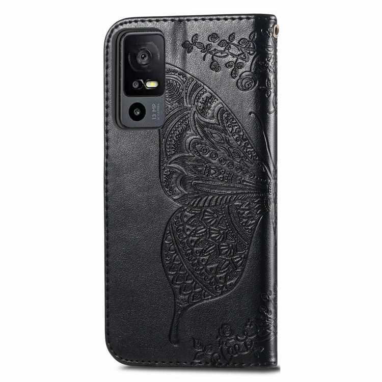 Funda de Cuero para TCL 40 Xe Butterfly Love Flower en Relieve (Negro)