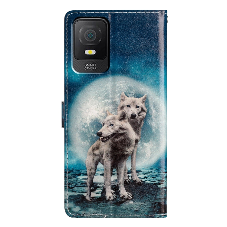 Funda de Cuero para Teléfono TCL 403 con Dibujo Coloreado Lobos Gemelos