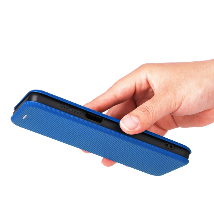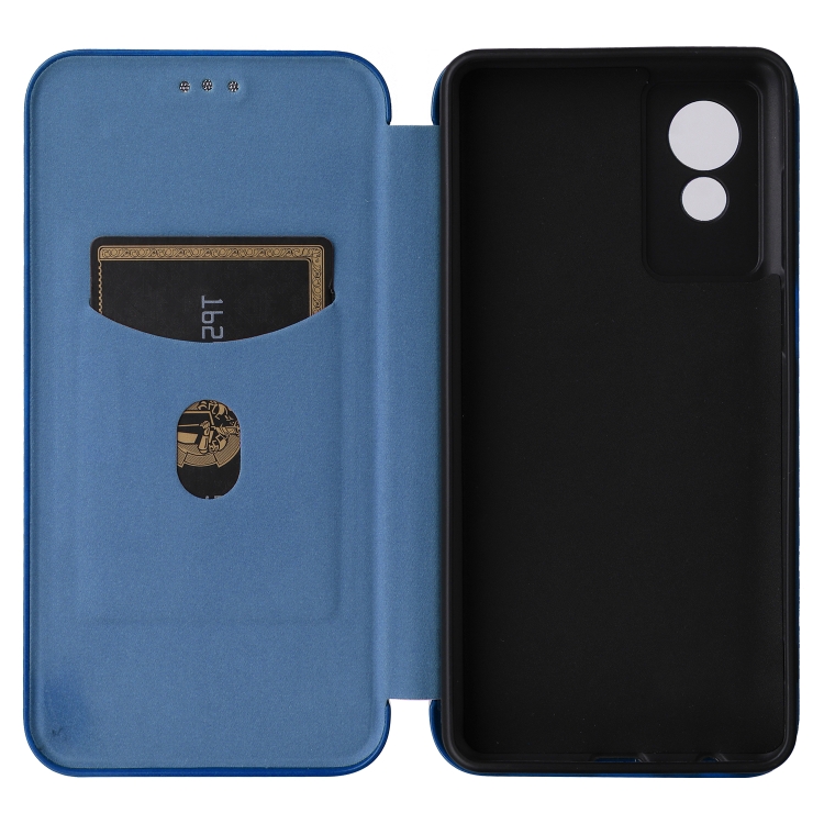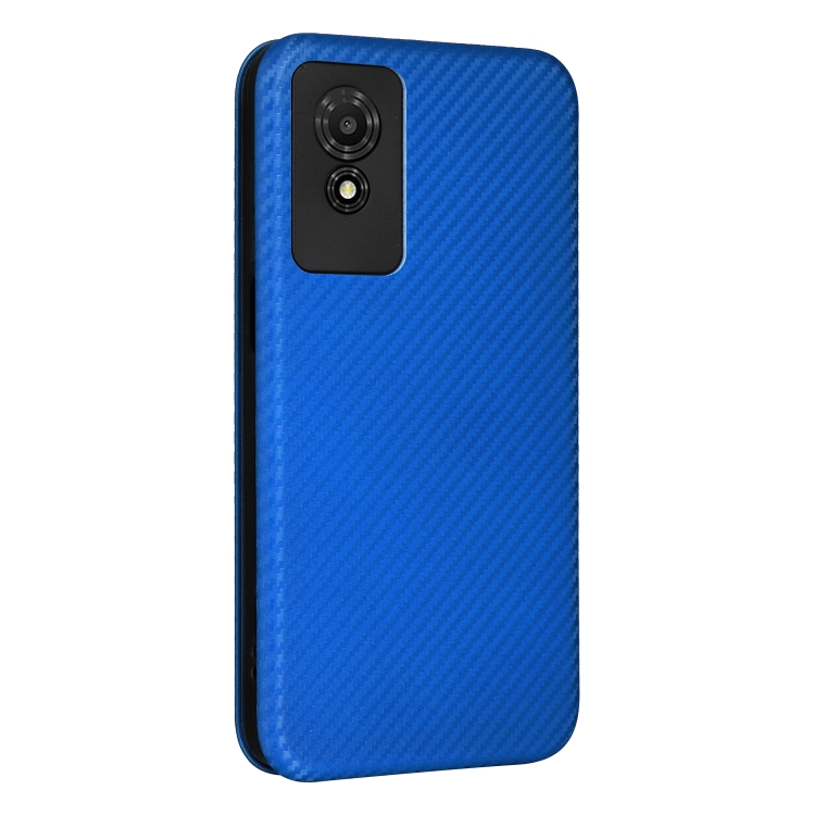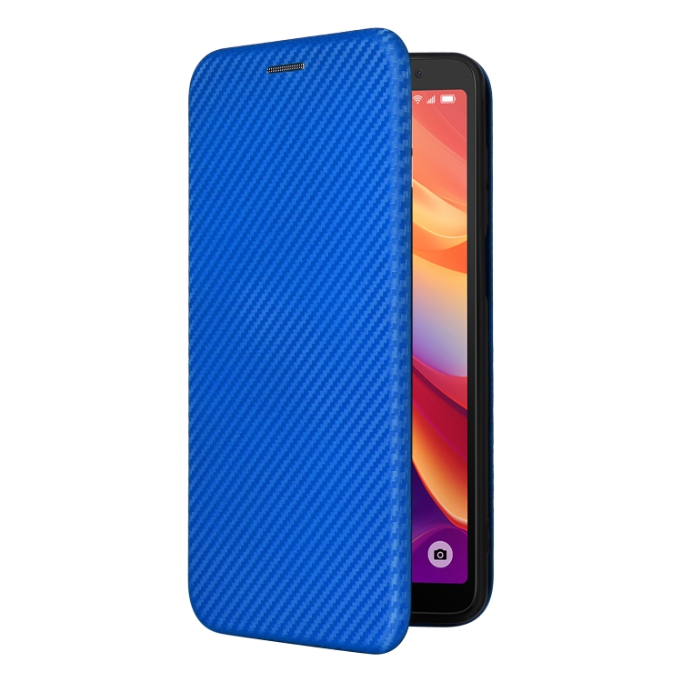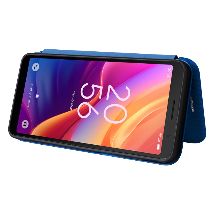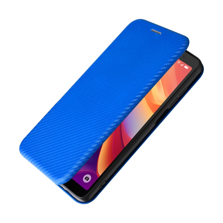 Funda de Teléfono para TCL 501 Cuero con Tapa Textura Fibra de Carbono (Azul)