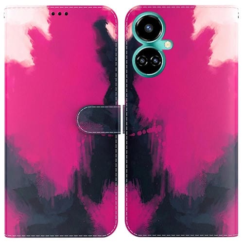 Funda de Cuero para Tecno Camon 19 con Tapa Horizontal y Patrón de Acuarela (Baya)