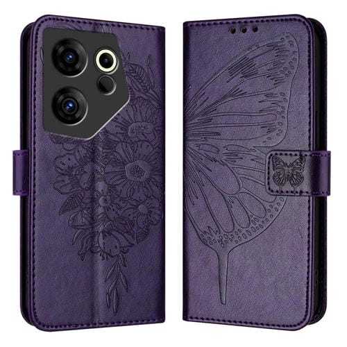 Funda de Cuero para Tecno Camon 20 Premier 5G con Mariposa En Relieve (Púrpura Oscuro)