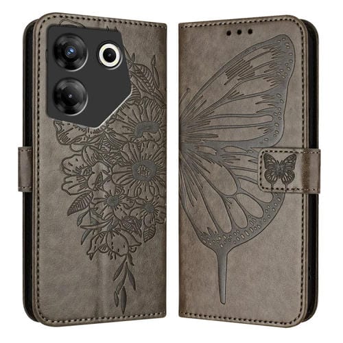 Funda de Cuero para Tecno Camon 20 Pro 5G con Mariposa en Relieve (Gris)