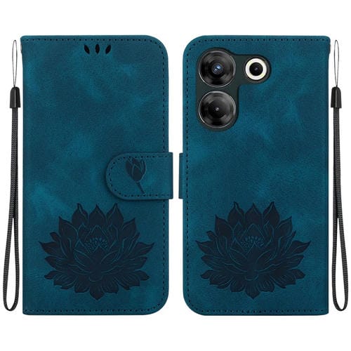 Funda de Cuero En Relieve para Tecno Camon 20 Pro 5G Lotus (Azul Oscuro)