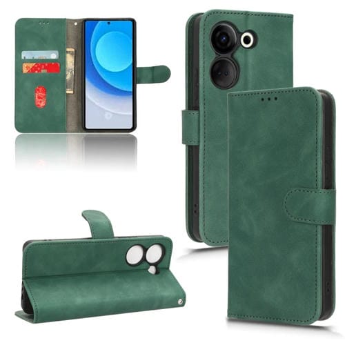 Funda de Teléfono Tecno Camon 20 Pro Skin Feel Cuero con Tapa Magnética (Verde)