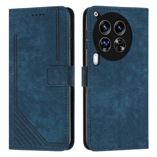 Funda de Cuero para Tecno Camon 30 4G y 5G con Patrón de Rayas y Cordón Largo (Azul)